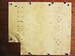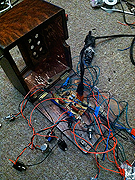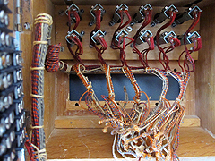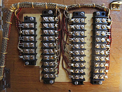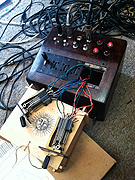 Synths completed via a 2012-13 grant from Harvestworks Digital Media Center. I chose two smaller, tabletop switchboards to house a comb filter/oscillator combo in one, and a ringmod/distortion unit in another - they are portable but still integratable with the rest of the modular system. Opening up an old switchboard always reveals sculpture-like wiring configurations and cryptic codes. |