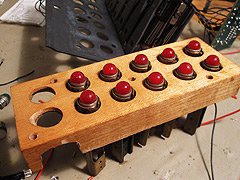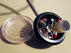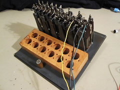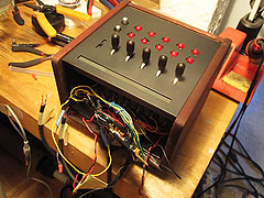 This is the second instrument I built. Considering the size of the sequencer I wanted to create a more portable machine, and it seemed to be an ideal way to integrate my headset by making a "voice changer." This was my first attempt at circuit bending an existing robot voice toy. I probably won't do this again as I'm focused on actual modular PCBs, but I'm happy I created this bizarre little voice effects unit. |