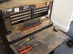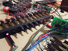 The island hotel that this machine served has fallen into disrepair and I had to clean wasps' nests out of it. However, it is now alive and well with filters, amplifiers, envelopes, audio attenuators and boosters (for integration with other gear) and lots of noise generators for anything from crisp snares and hihats to niagara falls and blustery stormy winds. |